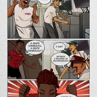 Essa dinâmica resultou na primeira saga da HQ MULTIVERSO OUTBACK. Teve burgers inéditos, personagens diversos, vilões complexos, e arcos narrativos inteiros que foram desenvolvidos em 02 semanas de job, ilustrados em 03 dias de lives e decididos por mais de 85 mil interações de usuários. Depois do evento, refinamos a HQ completa para publicação.